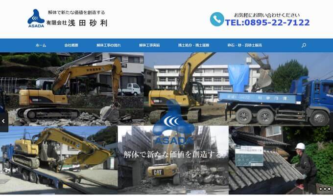 また、浅田組さんは保有している重機も豊富で、愛媛県内でトップクラスを誇ります。解体工事は狭小地や住宅密集地の現場の場合、大型の重機が入りづらいため工期が遅れることがありますが、重機を多く保有している浅田組さんならそういった心配もなさそうですね。