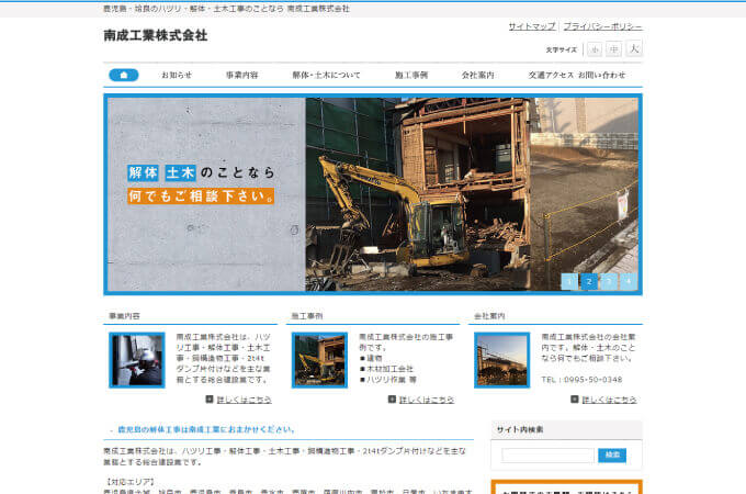 公式サイトに建造物の種類に応じた解体費用の目安を載せており、お客様が安心して工事を依頼できるように気を配っています。