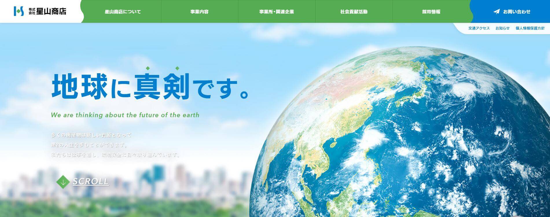 熊本市北区武蔵ヶ丘にある株式会社星山商店(ほしやましょうてん)さんは、昭和46年創業の会社です。「建造物解体」「鉄・非鉄スクラップ加工」「廃棄物の収集運搬・中間処理」「自動車リサイクル」といった事業を手掛けられており、廃棄物を大切な資源としてリサイクルすることで循環型社会の一端を担ってらっしゃいます。