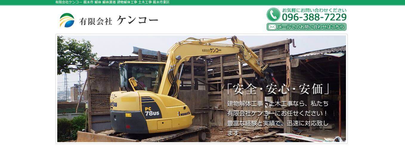 熊本市東区小山にある有限会社ケンコー(けんこー)さんは、個人住宅やアパートの解体はもちろん、ガレージやプレハブ倉庫などの解体工事まで手掛けられている解体業者です。