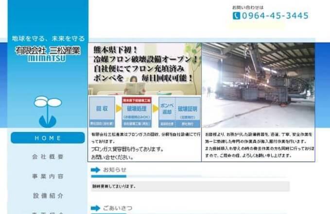 有限会社三松産業さんは熊本県で初めてフロンの破壊設備を導入し、フロンガスの回収、分解を自社で行っている業者さんです。