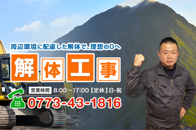 福井嶺南地域や兵庫県豊岡市、篠山市、三田市と幅広い地域で解体工事を手掛けている業者さんです。木造だけでなく、コンクリートブロック造の解体工事にも対応しており、あらゆる構造の建物が解体できる業者さんです。さらに、業者さんによっては取り扱いが難しい、アスベストなどの有害物質の撤去も安心してお任せできます。