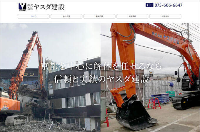 創業から40年以上、京都を中心に近畿一円で解体工事を営んでいる業者さんです。小さな小屋から個人住宅、ビルやマンション、工場に付属する煙突など様々な解体工事を手掛けており、関連企業さんからも高い評価を受けています。一見すると、解体工事は建物を壊して終わりだと思われがちですが、がれきや廃材の処分方法は法律で厳しく定められています。ヤスダ建設さんでは、がれきの収集や運搬に関する業務にも強いこだわりを持って取り組まれており、法律に則って適切な方法で処分してもらえるので安心です。