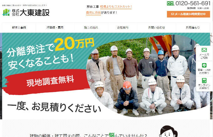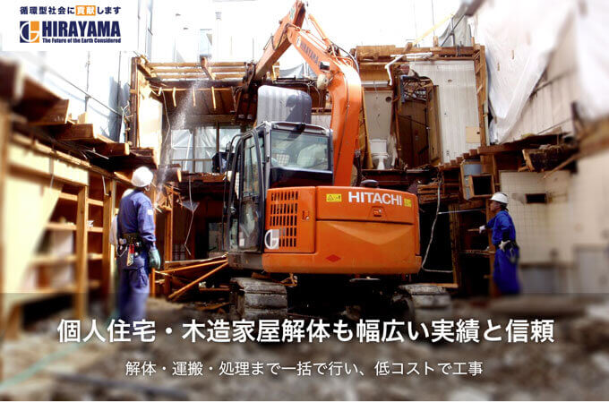 大阪、京都、兵庫といった関西エリアを中心に解体工事を手掛けている業者さんです。個人住宅の解体工事はもちろん、ビルや学校など鉄筋コンクリート造の大規模な解体工事も取り扱っていらっしゃいます。特に、環境に配慮した施工を心掛けている業者さんで、国際的な環境規格の認証を受けているのが特徴です。解体工事では大量のがれきが出てしまうので、廃材の処分まで責任を持って行なってくれる環境に優しい業者さんにお願いできると安心ですね。