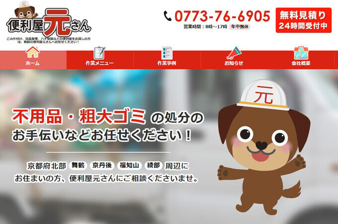 舞鶴市では、不用品処分や粗大ごみの処分、遺品整理まで依頼できる業者さん、木造家屋の解体の他、改修、舗装工事などにも幅広く対応している業者さんなど、複数の優良業者が存在します。
