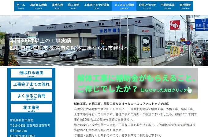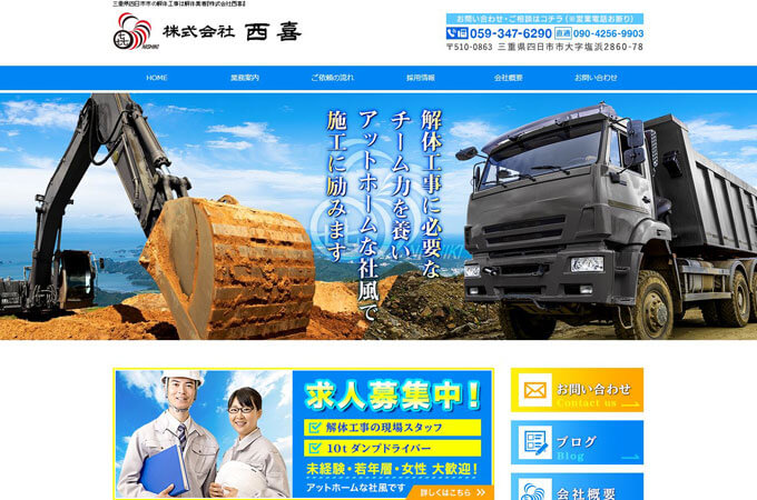 四日市市で木造住宅やRC造の建物の解体工事を行っている業者さんです。解体工事のほかに一般土木工事や重機土木工事などにも対応しています。