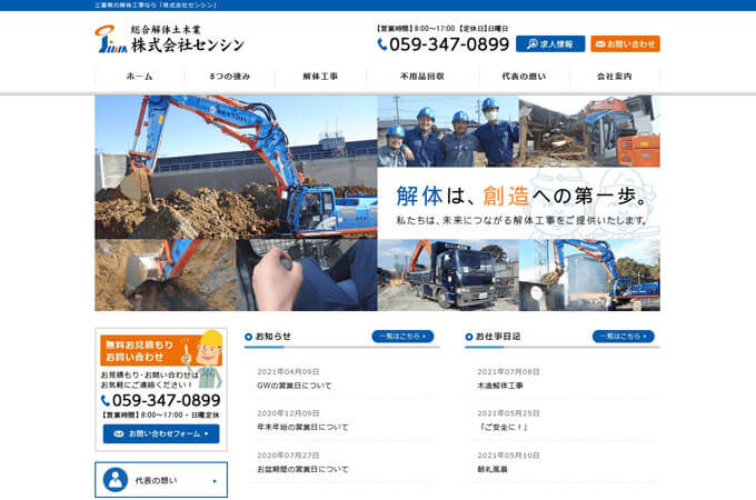 株式会社センシンさんは、創業以来“お客様第一主義”をモットーに掲げる解体工事専門の業者さんです。