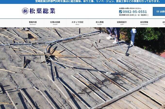 宮崎県門川町を拠点に活動されている株式会社松葉総業さんは、さまざまな「お家のお困り事」を解決するべく、解体工事、はつり工事、塗装工事、リノベーションなどを手掛けられています。