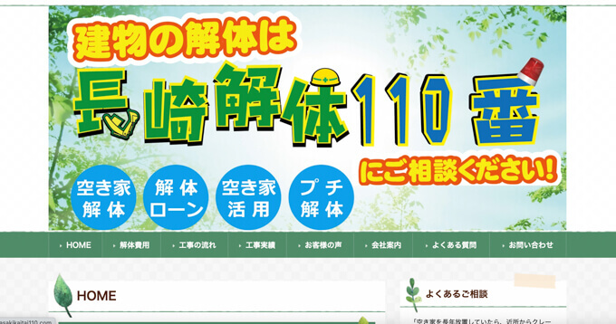 解体工事を専門に行なっている、長崎解体110番さん(運営は株式会社近藤組)。