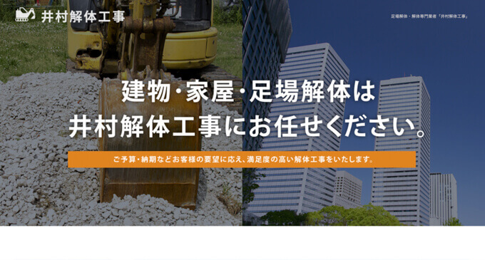 長崎県内の家屋解体・足場解体など各種解体工事やコンクリート型枠工事を請け負っている、井村解体工事さん。木造だけでなく、鉄骨造や鉄筋コンクリート造の家屋など、あらゆる建物の解体が可能な業者さんです。