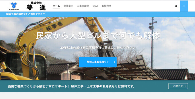そんな豊富な実績経験のある株式会社夢進さんは、自社サイトに解体作業現場が一目でわかる施工実績の詳細を載せているのがうれしいところ。