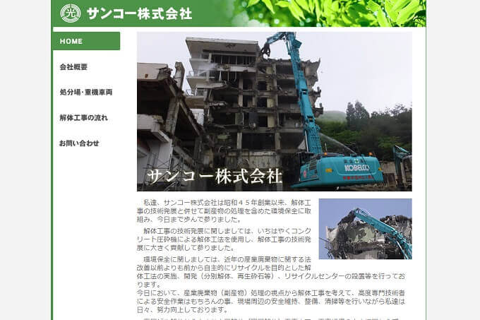サンコー株式会社さんは昭和45年の創業以来、「環境保全」を意識した解体工事を50年以上続けられています。法律で廃材のリサイクルが義務付けられる以前から、いち早く環境に目を向け、自主的に廃棄物の削減に取り組まれてきました。