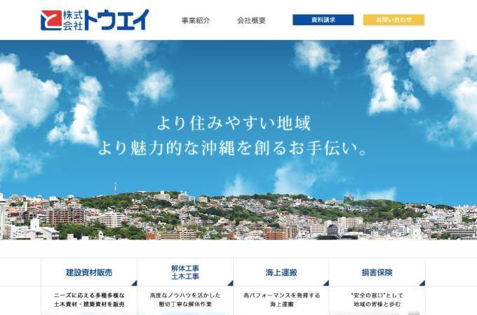 創立50年以上の歴史ある業者さんで、初めて沖縄県知事から一般建設業許可を取得した企業でもあります。公共道路の整備やモノレールの建設といった幅広い業務を手がけており、地元行政からも頼りにされる存在です。