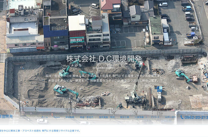 株式会社D.C環境開発さんの「D」は「dismantlement(構造物解体)」、「C」は「construction(建設業)」を表しています。佐賀県・福岡県を中心に、解体工事やアスベスト処理、産業廃棄物 収集運搬を手掛けるD.C環境開発さんは、「建物解体工事事業を通じて環境の整備、再開発に貢献する」を経営理念とする、クリーンな業者さんです。