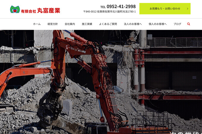 有限会社丸富産業さんでは、木造家屋・鉄骨造・鉄筋コンクリート造・鉄骨鉄筋コンクリート造・橋梁・地下埋設解体など、建物に限らず解体工事全般の施工が可能です。さらに「丁寧」「安心」「低価格」をコンセプトに解体工事で発生した廃材のリサイクルを推進し、限りある大切な資源を次の世代に活かせるよう効率的な解体工事を提案しています。