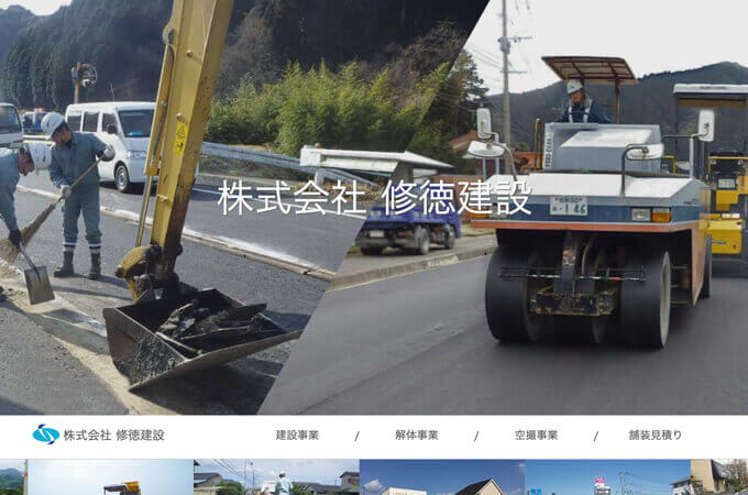 株式会社修徳建設さんは解体工事のほか、道路整備事業や河川・上下水道関連の土木工事、公共施設や店舗の駐車場整備など、人々の暮らしに直結した都市インフラの整備・保全を主な事業としている業者さんです。