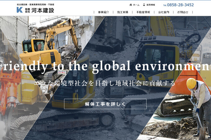 有限会社河本建設さんは解体工事のほか、建設・リフォーム事業や土木工事業、産業廃棄物処理事業、不動産事業などを手掛ける業者さんです。