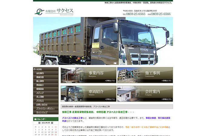 鳥取県西部、東部を中心とした山陰地方で住宅、ビル、橋、煙突等の解体工事を行っている会社さんです。有限会社サクセスさんは近隣住民への配慮を重視した解体を行なっており、保有している重機も低振動、低騒音の重機を取り揃えています。
